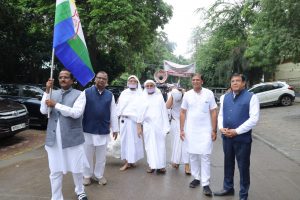 मुनिश्री अर्हंत कुमारजी के मंगलपाठ से आज प्रातःकाल की शुभ बेला मे मुनिश्री अर्हंत कुमारजी ठाणा-3 का भव्य चातुर्मासिक मंगल प्रवेश जुलूस ….श्रीमती शशिकलाजी रांका, महासभा के आंचलिक प्रभारी श्री निलेशजी रांका के निवास से समग्र तेरापंथ समाजजन के तत्वावधान मे प्रातः 8:20 पर प्रारंभ हुआ..इस जुलूस मे तेरापंथ सभा , महिला मंडल,युवक परिषद, प्रोफेशनल फोरम, अणुव्रत समिति, एंव ज्ञानशाला के ज्ञानार्थी, व समाज के वरिष्ठजन की बहुत अच्छी संख्या मे सहभागिता रही….किशोर मंडल की ओर से बाईक रेली मुख्य आकर्षण का केन्द्र रही जिसमे करीब 50 किशोरों ने बड़ी उत्साह व उंमग के साथ भाग लिया….साथ ही ज्ञानशाला के नन्हे मुन्ने बच्चों ने भी जुलूस मे पैदल चलकर अपने समर्पण की प्रस्तुति दी…सभी ने उत्साह दिखाते हुए धर्म संघ के नारो के साथ संघ की प्रभावना की…आप सभी की सहभागिता से आज का चातुर्मासिक मंगल प्रवेश का यह जुलूस तेरापंथ समाज इंदौर के लिए ऐतिहासिक एंव यादगार जुलूस रहेगा… मुनिश्री अर्हंत कुमारजी ठाणा-3 का तेरापंथ भवन न्यू पलासिया मे प्रातः 9:21 पर समस्त समाजजन की साक्षी मे मंगल प्रवेश हुआ….प्रवेश के पश्चात मुनिश्री के सानिध्य में तेरापंथ सभा का स्वागत एंव अभिनंदन का कार्यक्रम मुनिश्री के नवकार मंत्र संगान के साथ प्रारंभ हुआ….. सर्वप्रथम महिला मंडल की बहिनो द्वारा मंगलाचरण से शुरूआत हुई….. तत्पश्चात तेरापंथ सभा अध्यक्ष श्रीमान निर्मलजी नाहटा ने मुनिश्री के मंगल प्रवेश पर स्वागत भाषण प्रस्तुत किया….आज के इस कार्यक्रम के मुख्य अतिथि इंदौर के महापौर श्रीमान पुष्यमित्रजी भार्गव का स्वागत व सम्मान तेरापंथ सभा अध्यक्ष श्रीमान निर्मलजी नाहटा, महासभा के वरिष्ठ उपाध्यक्ष श्री हितेन्द्रजी मेहता, सभा के परामर्शक श्री योगेशजी मेहता, के द्वारा साहित्य से किया गया ….. तत्पश्चात महापौरजी ने अपने स्वागत भाषण मे कहा की मै इंदौर का प्रथम सेवक होने के नाते समस्त इंदौर वासियों की ओर से मुनिश्री का स्वागत व अभिनंदन किया गया एंव अभिनंदन पत्र भेट किया…. कार्यक्रम के इसी क्रम मे तेरापंथ समाज इंदौर की सभी संघीय संस्थाओं के अध्यक्ष एंव मंत्री, समाज के सभी वरिष्ठजन, बेटी तेरापंथ की, मुनिश्री के न्यातिले परिवार, के द्वारा स्वागत उद्बोधन प्रस्तुत किया गया…. कार्यक्रम मे तेरापंथ युवक परिषद, तेरापंथ किशोर मंडल एंव ज्ञानशाला की सुंदर प्रस्तुति दी गई….आज के इस कार्यक्रम मे श्रमण संघ उप प्रवर्तक श्रुत मुनिजी म:सा: का भी सानिध्य प्राप्त हुआ एंव श्रुति मुनि जी ने प्रेरणास्पद प्रवचन फरमाया…