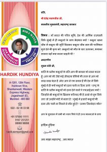 हार्दिक हुंडिया ने ये भी सवाल किया है की जो कबूतरो को मौत के घाट उतारकर, भगाकर सरकार वहाँ क्या करना चाहती थीं ? देश में सिर्फ़ मुंबई में ही क्यों कबूतरों को दाना पानी ना दिया गया? राष्ट्र के शांति के प्रतीक कबूतरों को दाना देने वालो पे एफआईआर क्यों ? जिन्होंने भी कबूतरों के ख़िलाफ़ न्याय मंदिर में फ़रियाद की है उनसे वो सबूत लिये जाए जो उन्होंने कोर्ट में बताए है ? मुंबई में हजारों कबूतरों का दाना और पानी ना मिलने से मौत हुई है ? उनका जिम्मेदार कौन ? आप के सुशासन में सभी को न्याय मिले ये ही उच्च भावना है