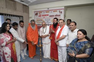 कार्यक्रम का शुभारंभ परम पूज्य महामंडलेश्वर श्री राम गोपाल दास जी महाराज (पंचकुइया पीठाधीश्वर), परम पूज्य संत श्री अन्ना जी महाराज (दत्त मंदिर संस्थान) एवं परम पूज्य संत श्री अच्युतानंद जी महाराज के करकमलों द्वारा विधिवत पूजा-अर्चना के साथ मेट्रो प्राइड बिल्डिंग नवलखा चौराहे पर किया गया।